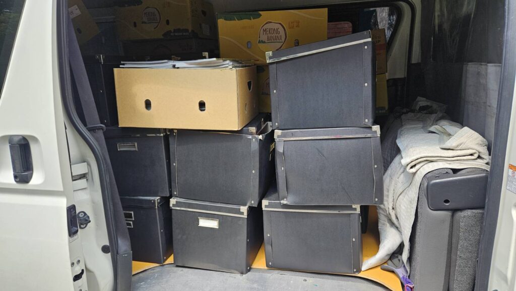 ikea製の箱に詰め込んで、ハイエースへ。