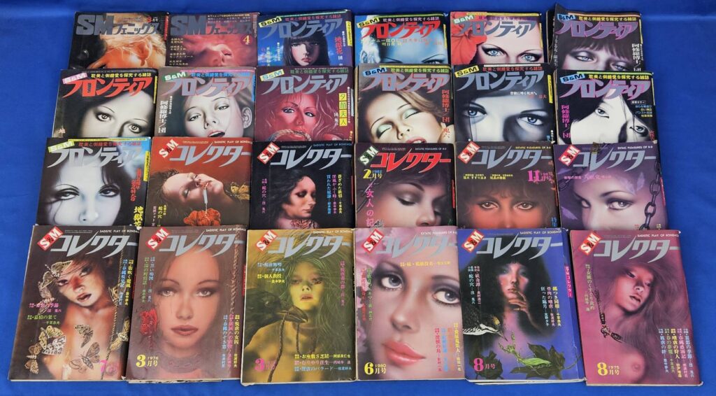 そして主事雑多に、「SMアブハンター」「SMソドム」「SMスピリッツ」「SMキング」「SMフェニックス」「SMクラブ」「SM奇譚」など。