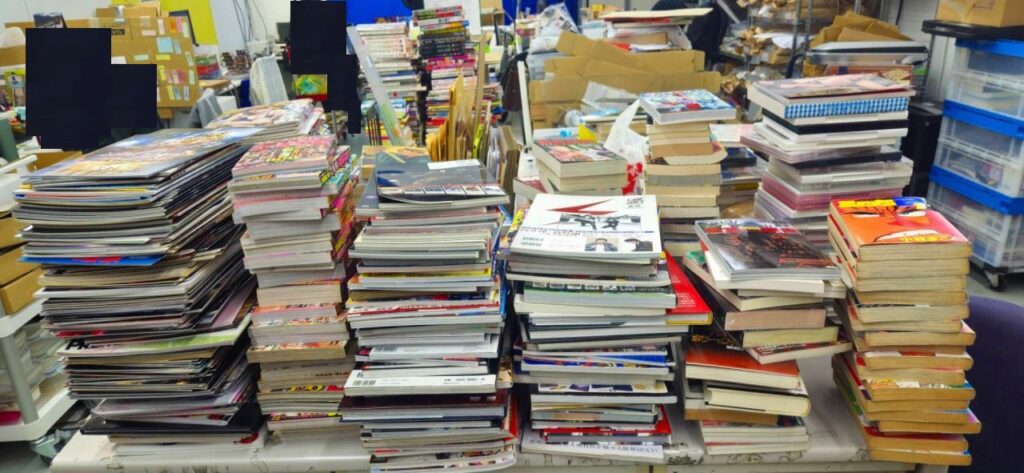 前回に引き続き、同じ方から引越しによる蔵書の整理でお呼びいただきました。行ってみると、すでに用意してあり、特撮本やアイドル関連/アメコミ等がございました。何度もお呼びいただき本当に感謝です。すぐに整理に取り掛かりました。