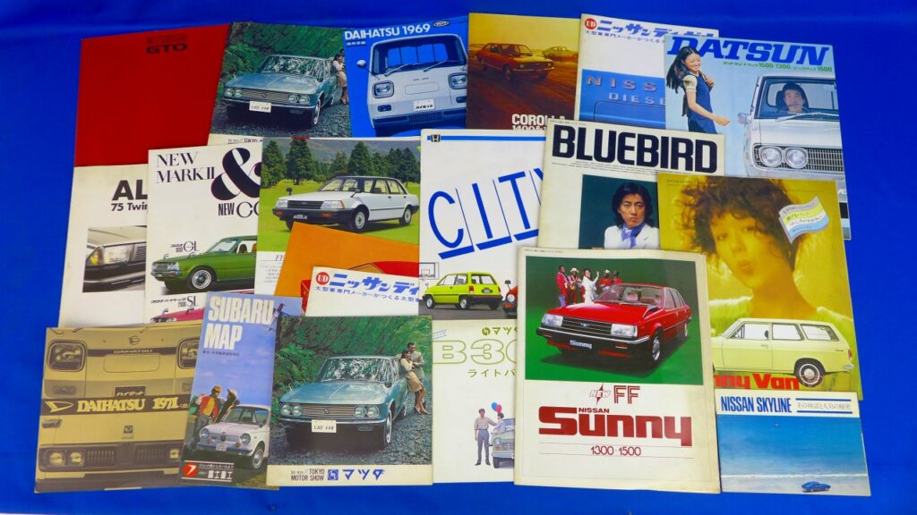 ダットサン、マツダB360、日産サニー、ホンダシティなど懐かしい名前が並びます。