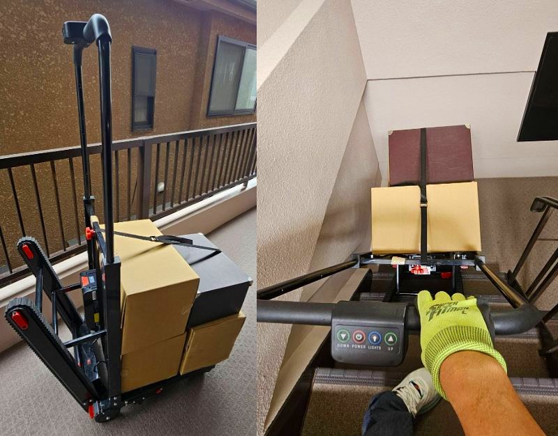 建物の3階部分なので、キャタビラ台車にて運搬。これは便利(^^♪